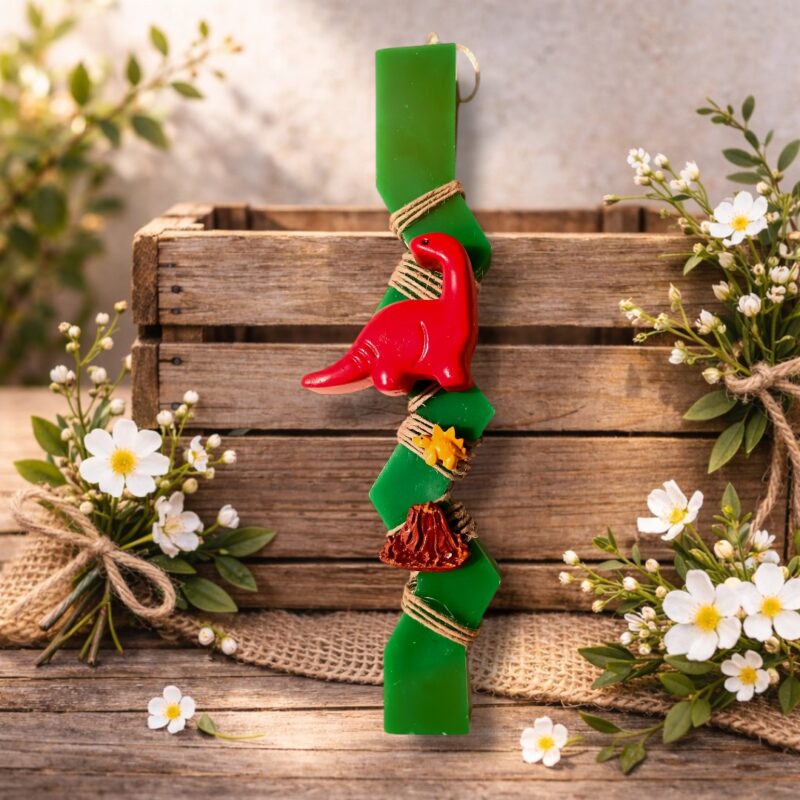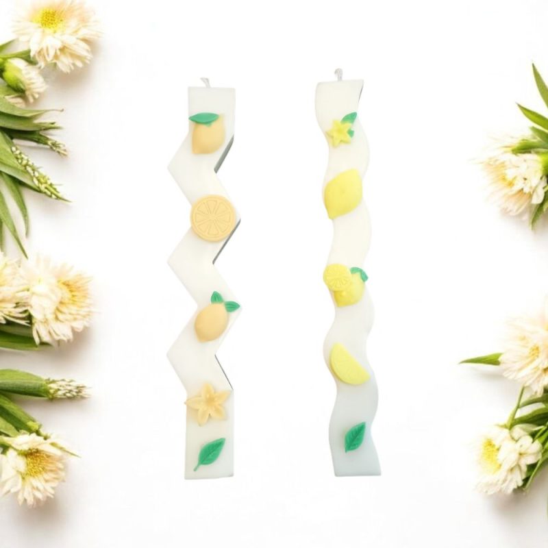 Αρωματική Λαμπάδα από Φυτικό Κερί – Λουλούδια σε Φόντο Μέντα