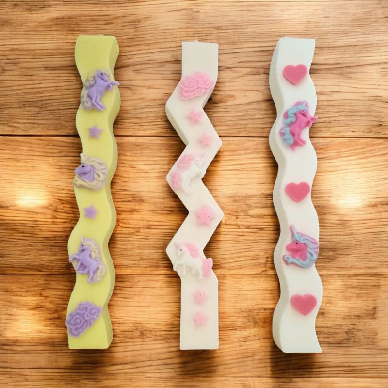Αρωματική Λαμπάδα από Φυτικό Κερί – Μονόκεροι Φουξ & Γαλάζιο