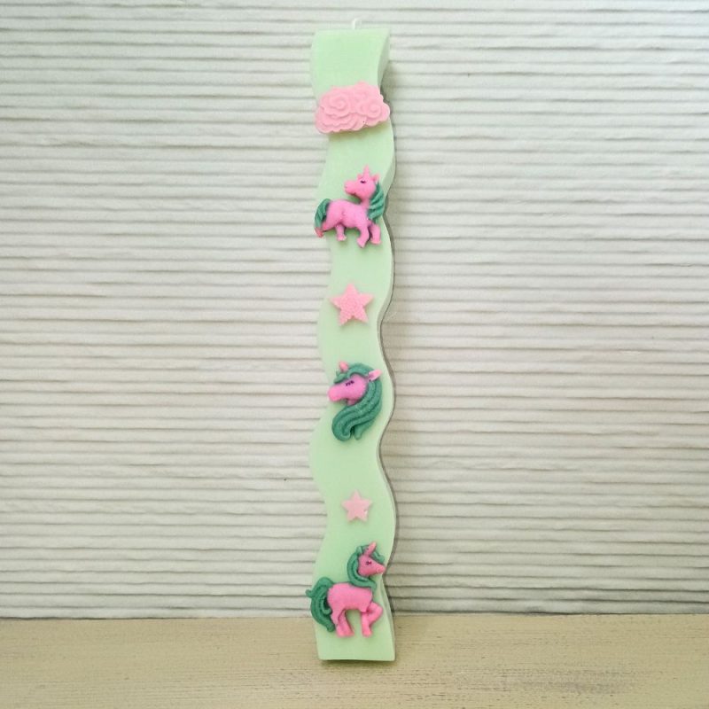 Αρωματική Λαμπάδα από Φυτικό Κερί – Μονόκεροι Φουξ & Πράσινο