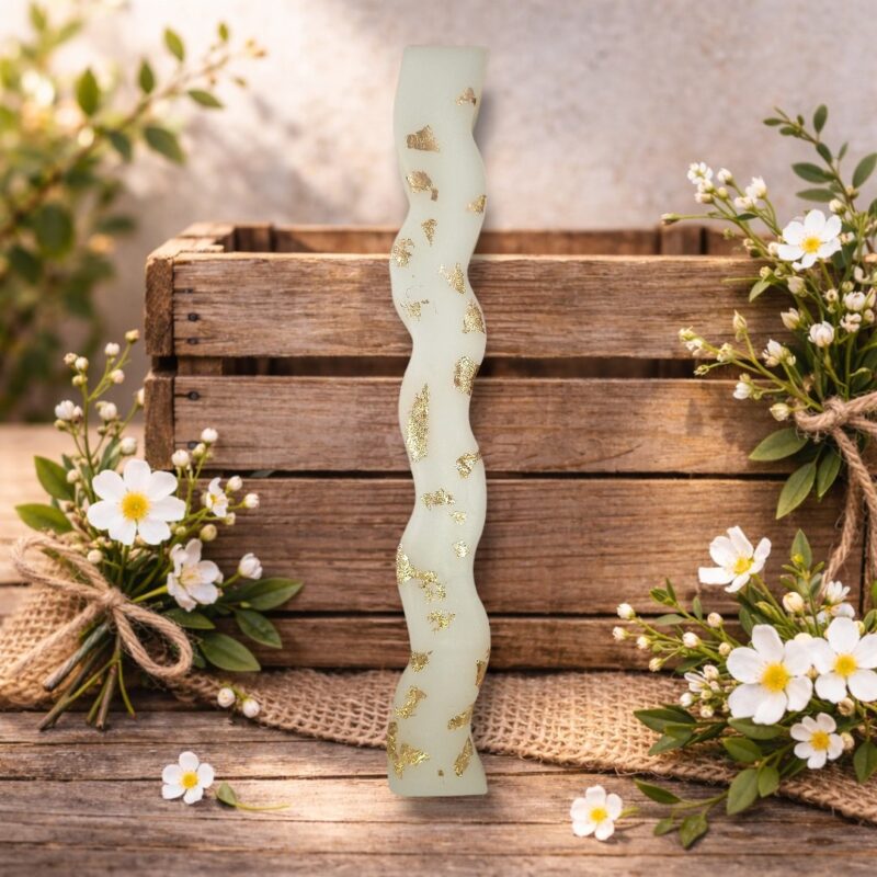 Χειροποίητη Αρωματική Λαμπάδα – Metal Wave Λευκό με Χρυσό
