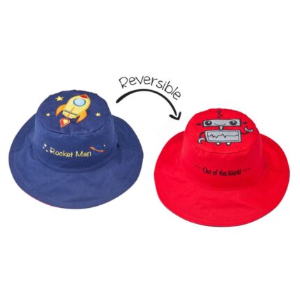 Αντηλιακό Bucket Καπέλο Διπλής Όψης με Προστασία UPF50+ Flapjackkids (Cotton) – Spaceship/Robot