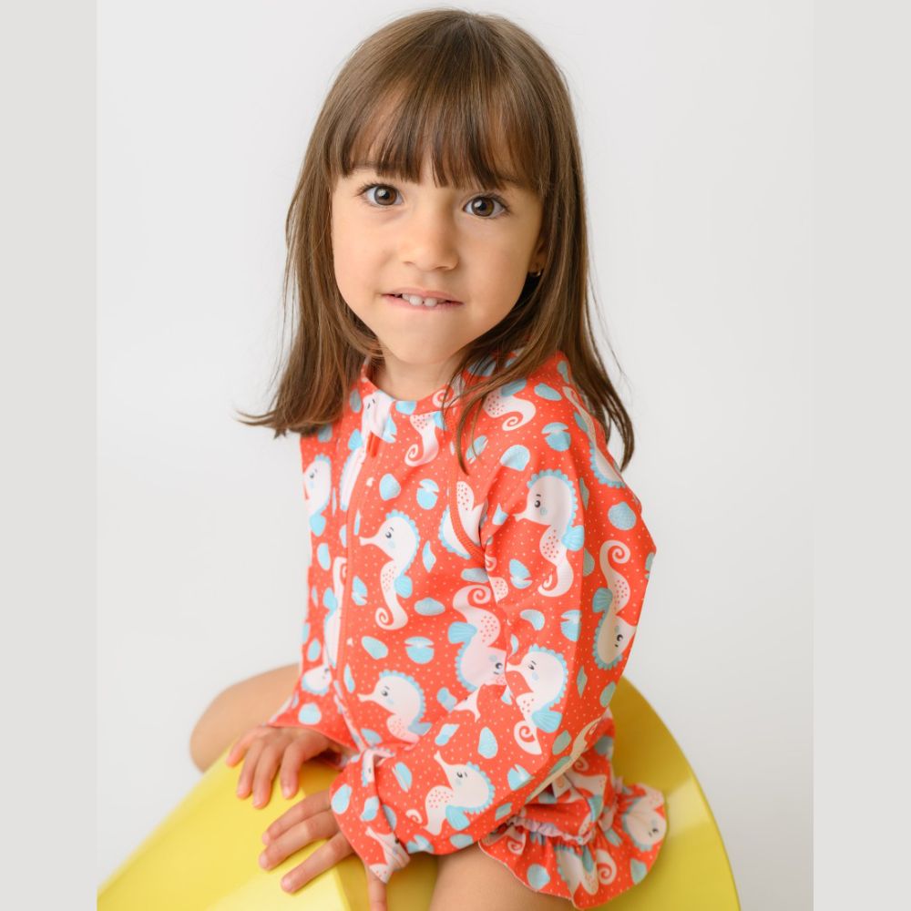 Δεν υπάρχει πιο χαριτωμένο σετ από το Σετ UV μαγιό-πάνα, καπέλο και μπλούζα Seahorse από την Zoocchini!