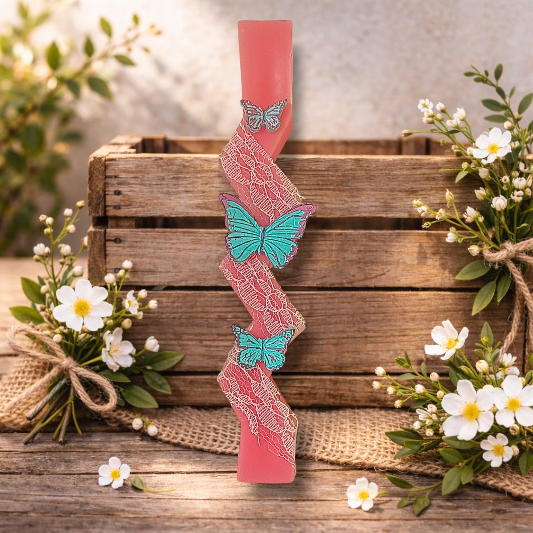 Χειροποίητη, αρωματική και ρομαντική, αυτή η λαμπάδα με τις πεταλούδες και τη δαντέλα είναι τέλεια για τις μικρές δεσποινιδούλες!