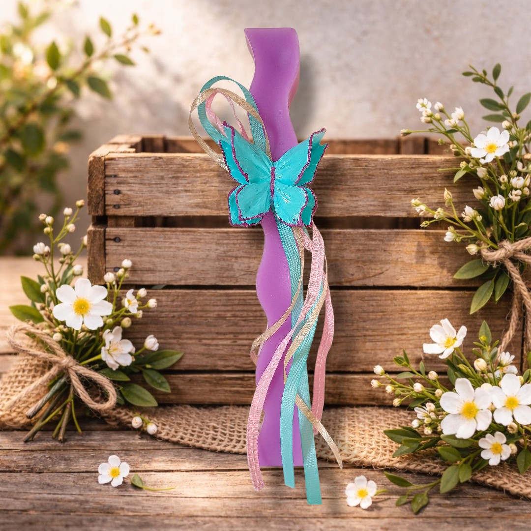 Χειροποίητη, αρωματική και ρομαντική, αυτή η λαμπάδα με τη μεγάλη πεταλούδα και τις κορδέλες είναι τέλεια για τις μικρές δεσποινιδούλες!
