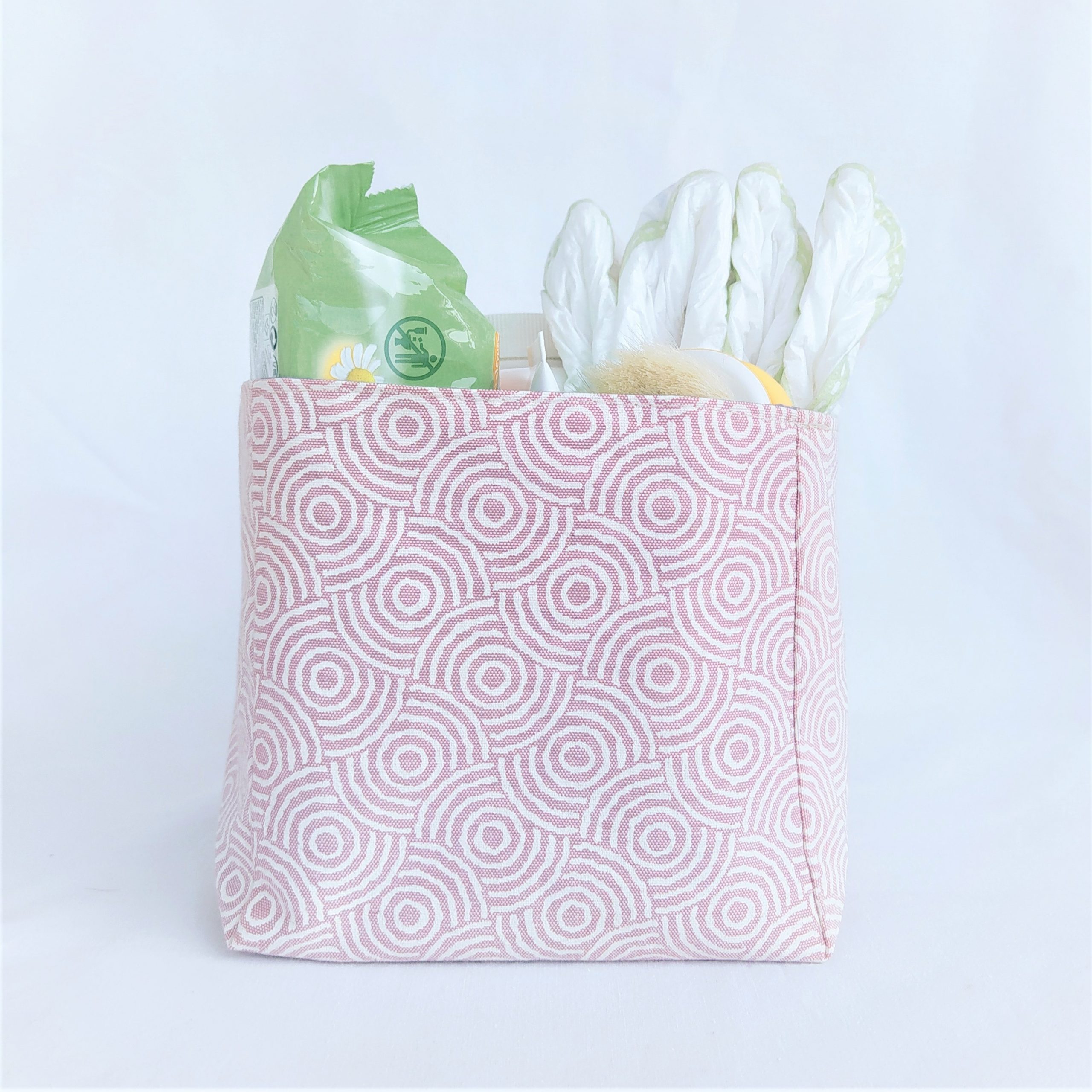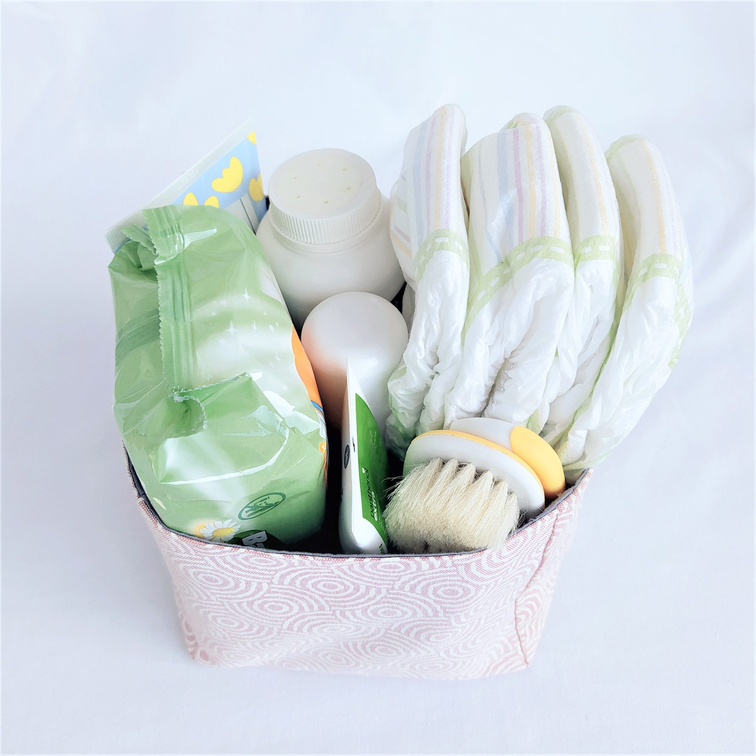 Καλαθάκι οργάνωσης των βρεφικών καλλυντικών σε απαλό ροζ χρώμα.
