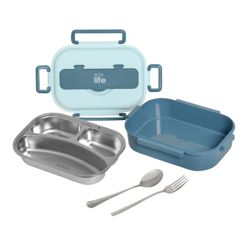 Φαγητοδοχείο με Χώρισμα 3 Θέσεων 1000ml Ecolife – Γαλάζιο