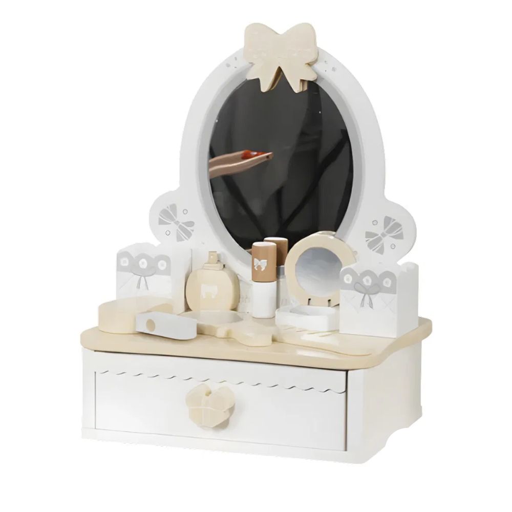 Τα παιδιά μπορούν να χρησιμοποιήσουν τα διάφορα αξεσουάρ για να “μακιγιαριστούν” και να χτενίσουν τα μαλλιά τους και να τα αποθηκεύσουν στο συρτάρι του κομοδίνου.Υψηλή ποιότητα κατασκευής από μασίφ ξύλο.