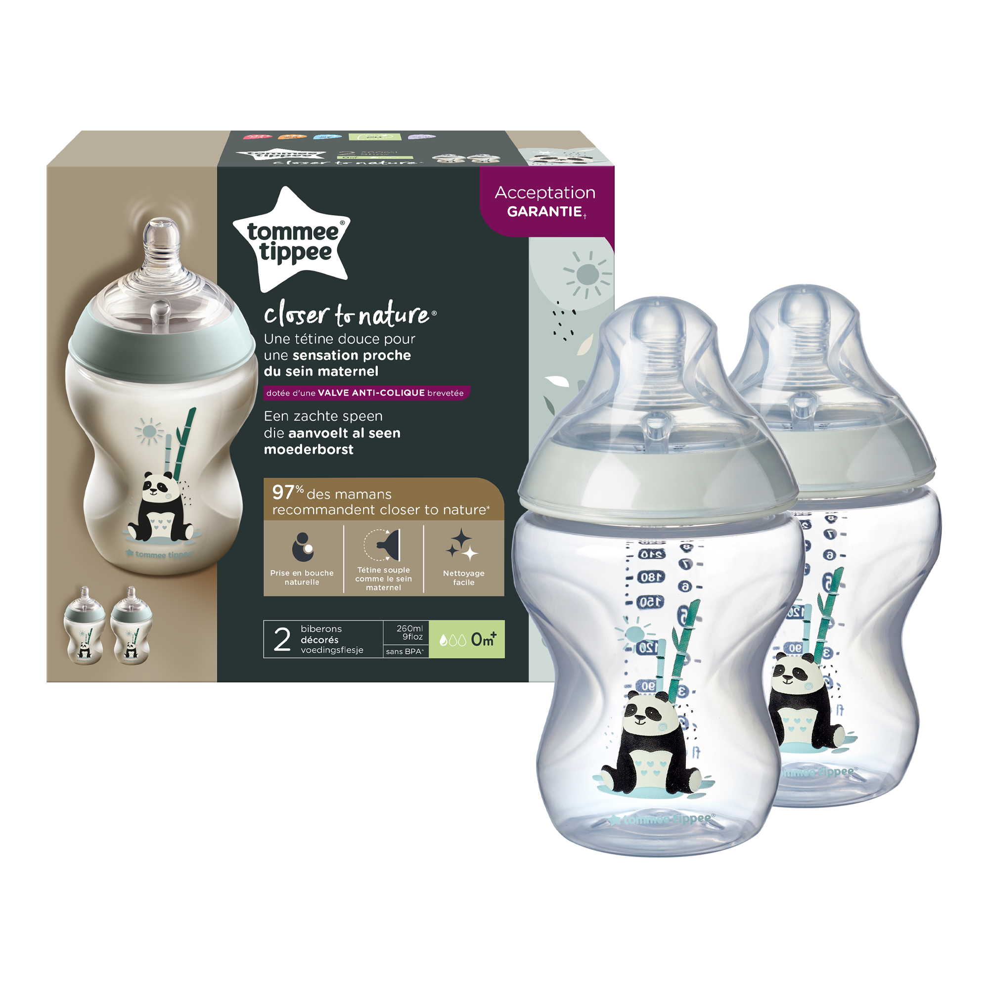 Το μπιμπερό Closer to Nature διαθέτει την καινοτόμα και βραβευμένη θηλή Tommee Tippee η οποία χάρη στις πατενταρισμένες ραβδώσεις και στην μαλακή εύκαμπτη σιλικόνη μιμείται τις κινήσεις του μητρικού στήθους.