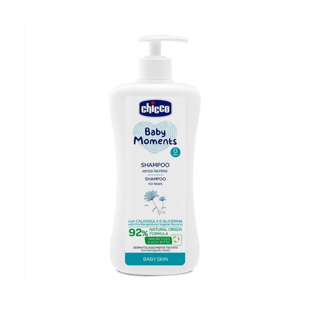 Το Σαμπουάν New Baby Moments της Chicco καθαρίζει απαλά τα λεπτά μαλλιά του μωρού χωρίς να ερεθίζει τα μάτια. Η φόρμουλα χωρίς δάκρυα περιέχει εκχύλισμα καλέντουλας γνωστή για τις καταπραϋντικές της ιδιότητες.