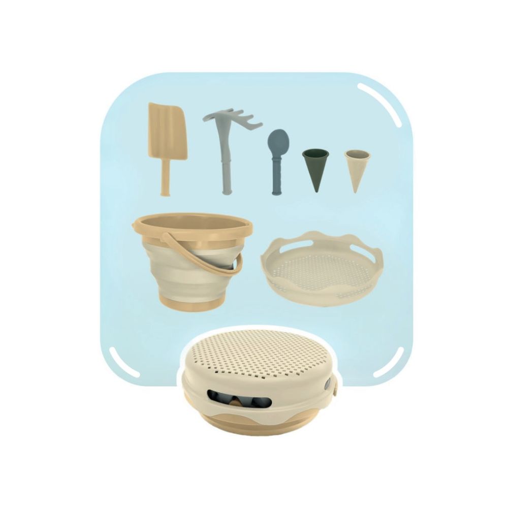 Με αυτό το κουβαδάκι 7 σε 1 έχετε ένα πλήρες σετ παιχνιδιών άμμου για σκάψιμο, σχηματισμό, κοσκίνιμα και τσουγκράνισμα.