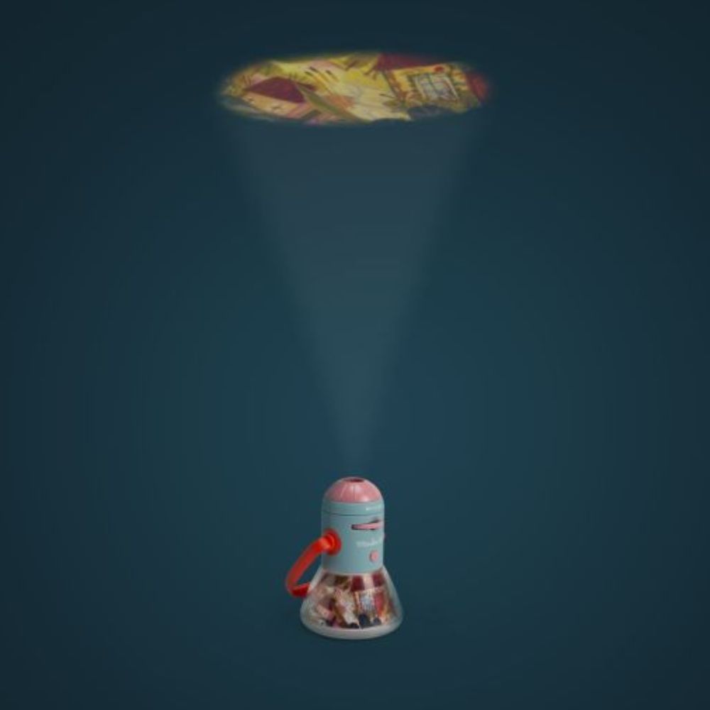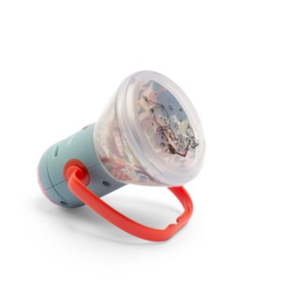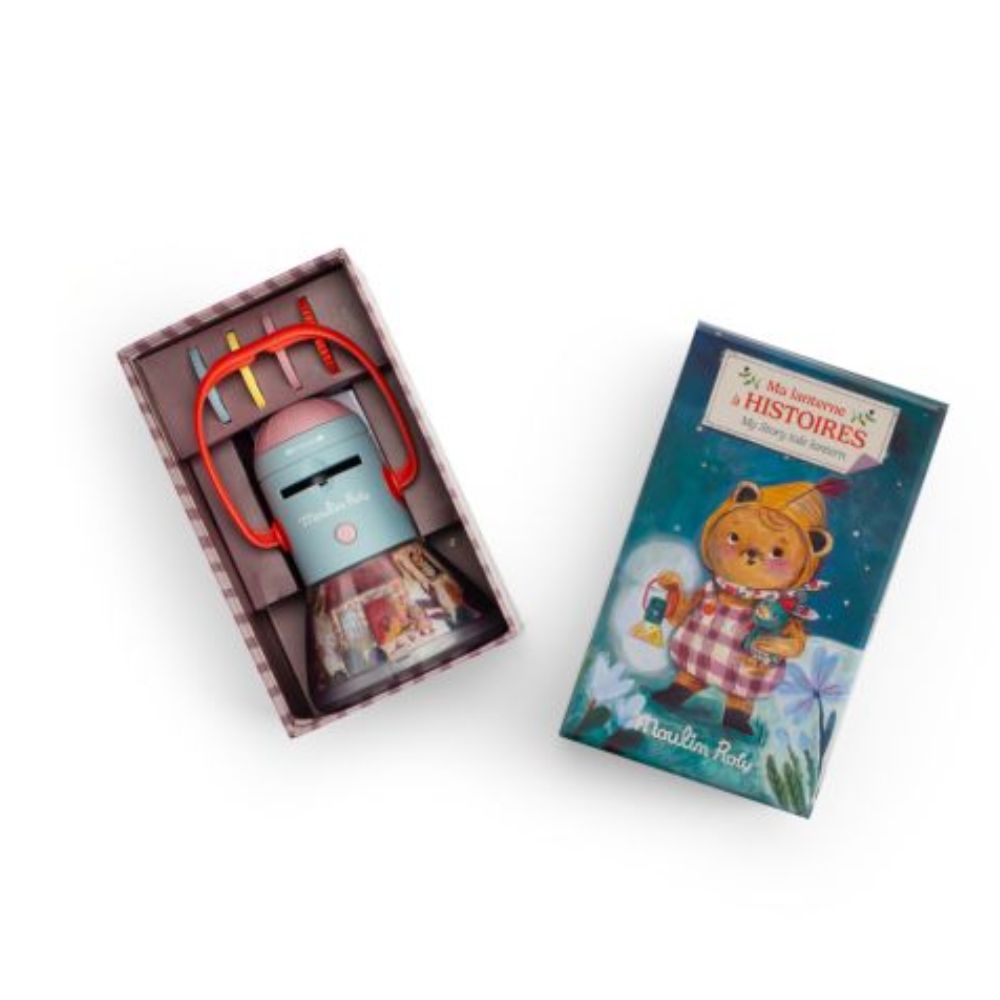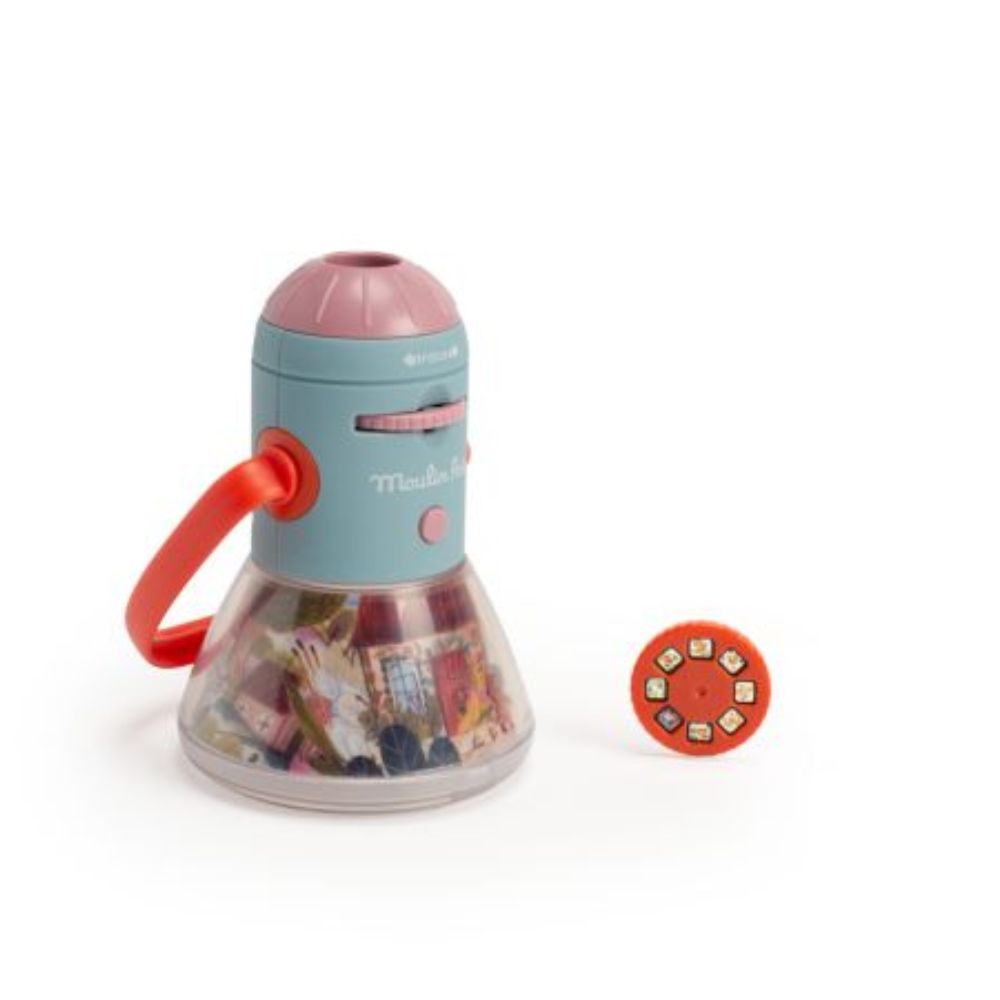 Σβήστε το φως και το ταξίδι στον κόσμο της φαντασίας και των χρωμάτων ξεκινά! Με τον φακό προβολής ιστοριών της Moulin Roty οι ιστορίες ζωντανεύουν στον τοίχο σας και ξετυλίγονται μαγικά κάθε φορά που γυρνάτε τον δίσκο.
