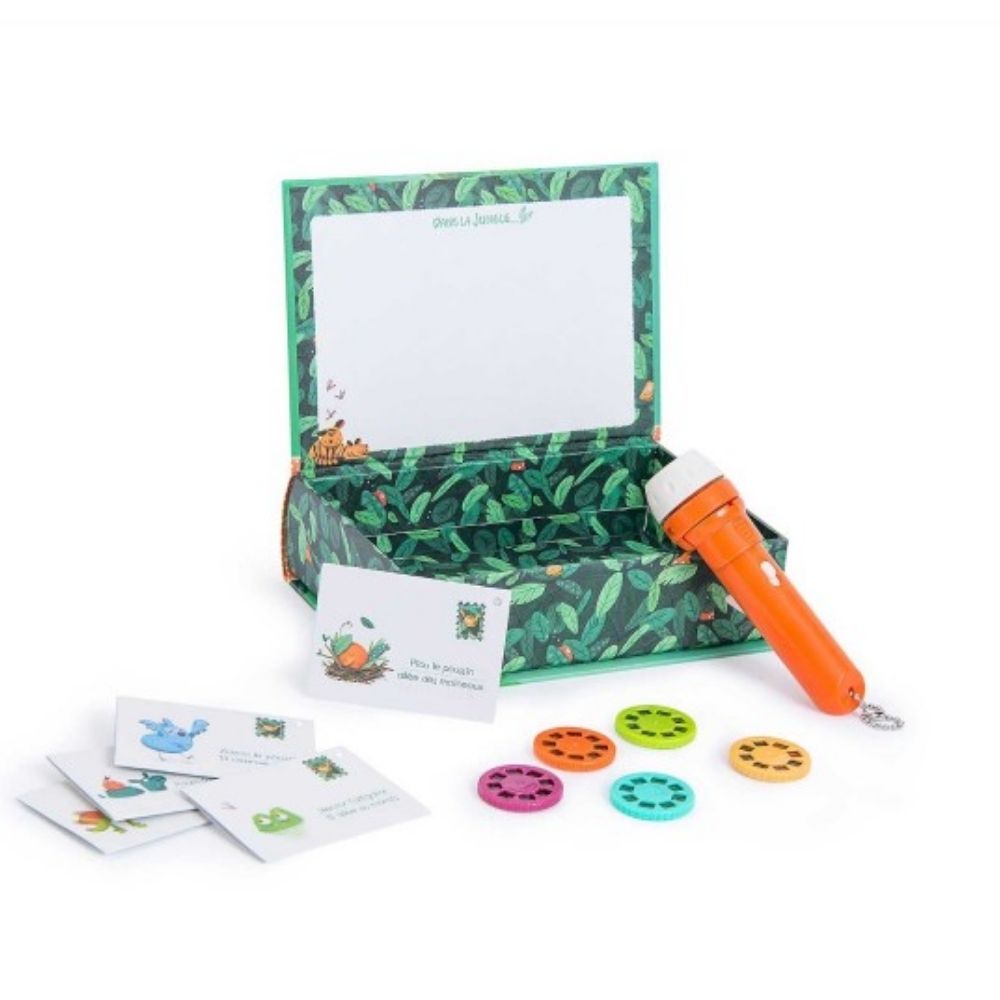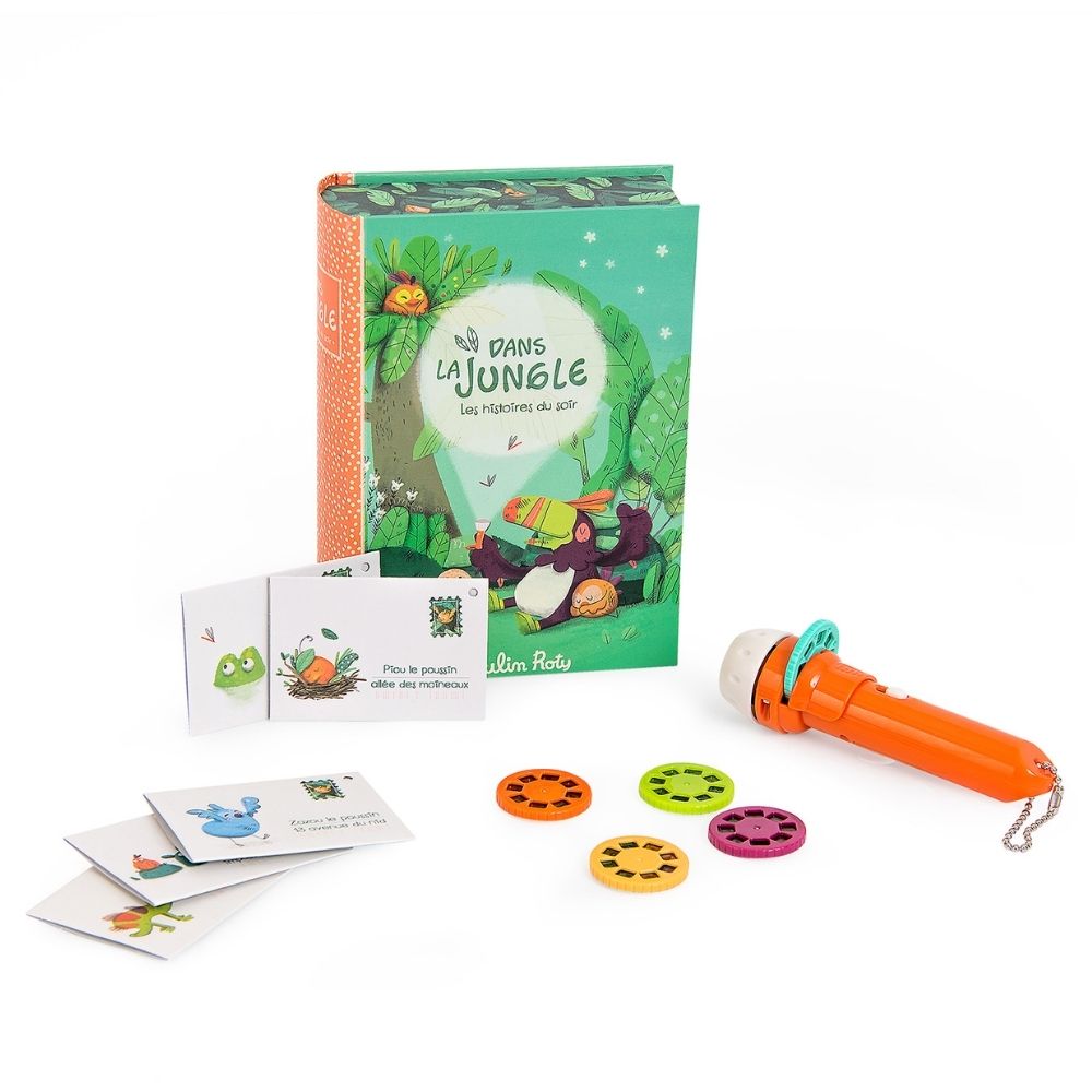Σβήστε το φως και το ταξίδι στον κόσμο της φαντασίας και των χρωμάτων ξεκινά! Με τον φακό προβολής ιστοριών της Moulin Roty οι ιστορίες ζωντανεύουν στον τοίχο σας και ξετυλίγονται μαγικά κάθε φορά που γυρνάτε τον δίσκο.